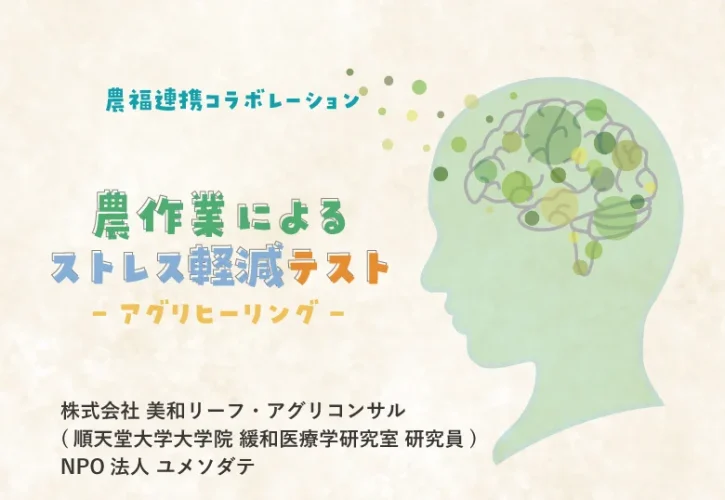 「農作業によるストレス軽減」のテストの成果を公開し、その有用性を証明するとともに、アセスメントの一部とすることを目的とし実施するものです。